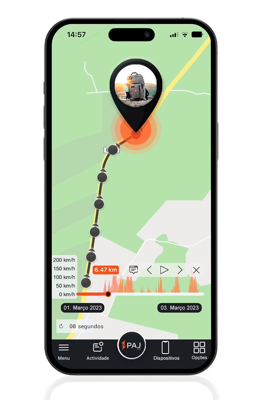 No momento em que sua mala ou bagagem sair da zona de segurança que você definiu previamente no dispositivo GPS, você receberá uma notificação imediata tanto no seu aplicativo móvel quanto por e-mail.