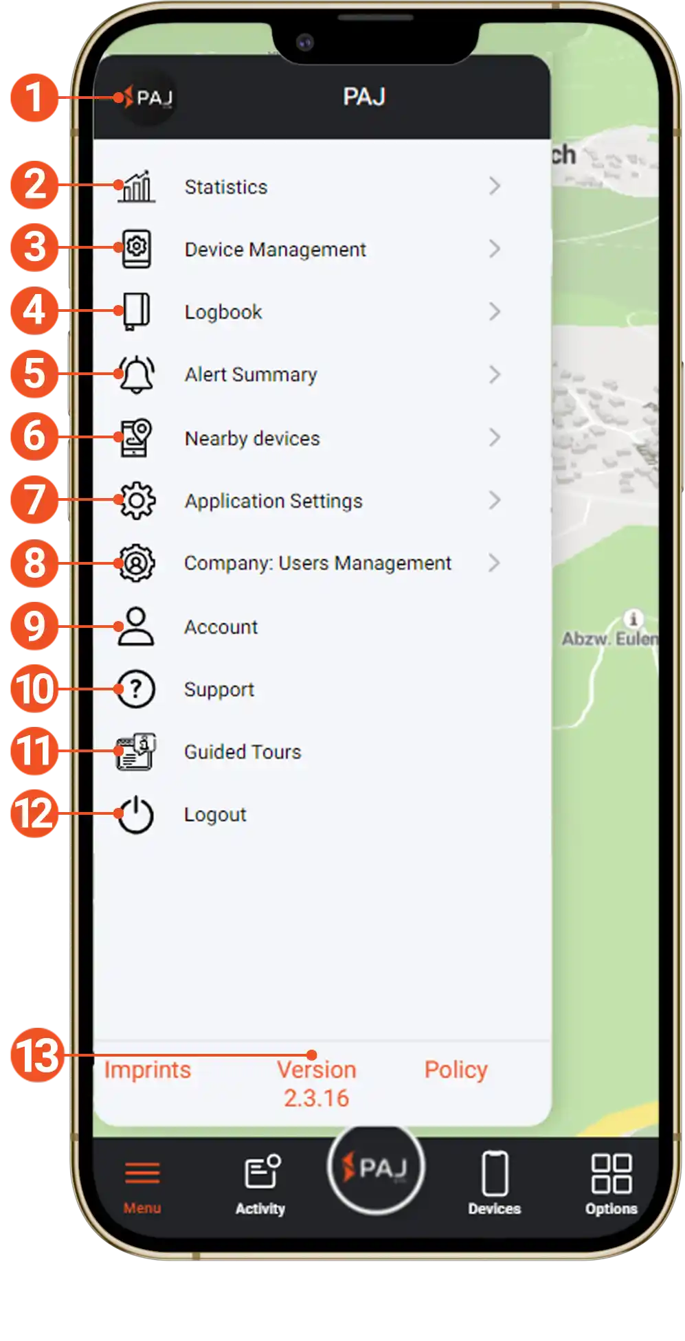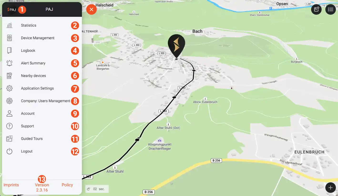 Toque no logotipo do PAJ para atualizar a página e recarregar o mapa.