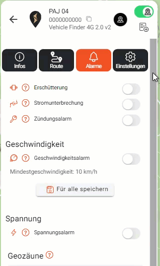 - Modos de aplicativo: predefinições para uso em veículos, animais de estimação, pessoas ou negócios
